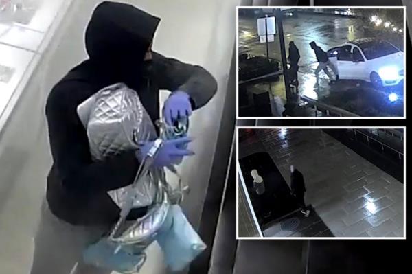 令人震惊的监控录像显示,这群人在下午5点30分左右冲进这家高档零售店,把尽可能多的手袋塞进怀里。