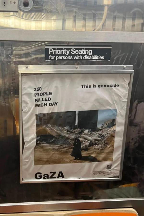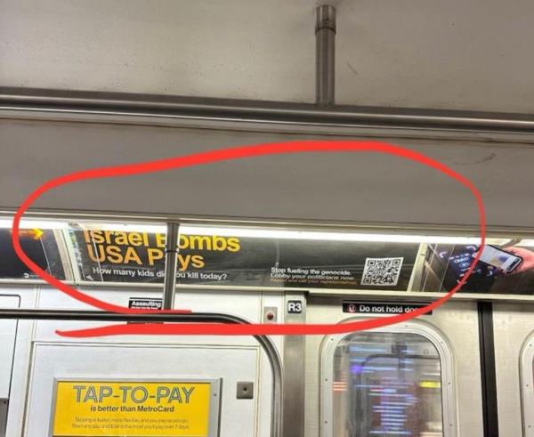 “我们注意到,某些人非法安装艺术品,覆盖企业的付费广告,传播对以色列的仇恨,这反过来又助长了反犹主义,”给大都会运输管理局领导人的电子邮件说。