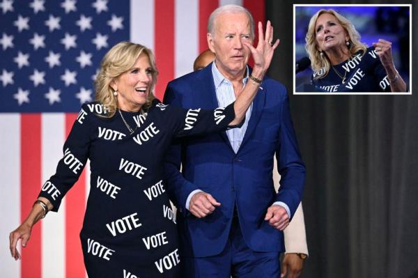 美国第一夫人吉尔·拜登周五在北卡罗莱纳参加拜登总统辩论后的首次集会,她穿着一件大胆的——有些人可能会说是绝望的——时尚宣言,穿着一件恳求观众“投票”的裙子。