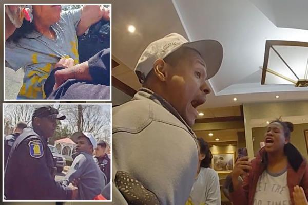 视频显示,周二下午,警方在当地一家华美达酒店的混战中逮捕了两人,但在此之前,他们被一群不守规矩的移民暴徒包围,并用西班牙语痛骂。