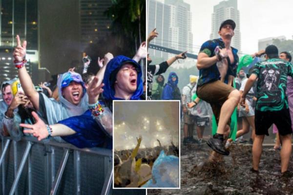 社交媒体上发布的几段视频显示,穿着雨披的音乐会观众在齐脚踝深的水和暴雨中漫步,他们被告知要离开现场。