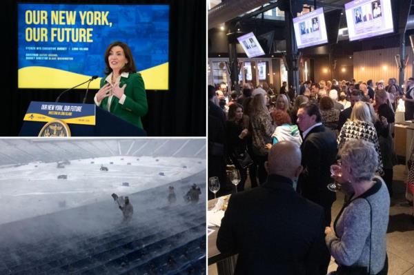 当最受欢迎的比尔队在Highpoint体育场的冰原上对阵超级碗卫冕冠军和他们的斯威夫特男友近端锋特拉维斯·凯尔斯时,Hochul和她富有的支持者们将在西35街的时尚Versa酒吧放松。