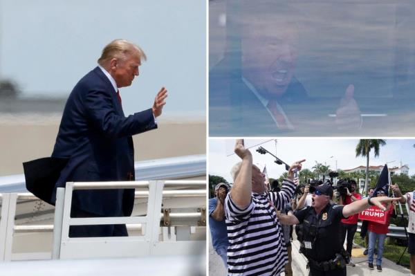 在他抵达阳光之州之前,数十名“让美国再次伟大”的支持者已经开始聚集在特朗普国家多拉尔高尔夫俱乐部附近,在周二下午迈阿密美国地方法院对他进行传讯之前,他预计将在那里过夜。