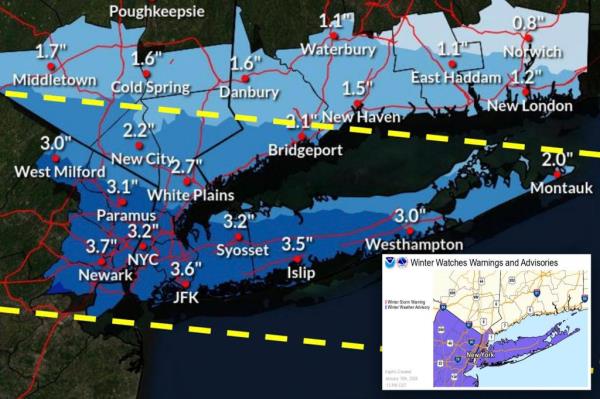 从周五到周六,纽约市可能会有多达4英寸的积雪覆盖,就在几天前,上一次冬季风暴刚刚经过该地区。