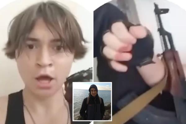 在社交媒体上分享的一段视频中,16岁的Tihran Ohannissian满身是血,浑身是伤,摇摇晃晃地拿着机关枪和战术手套,说:“再见!光荣属于乌克兰!”