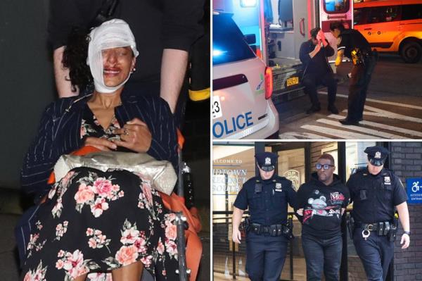一名女子在中城的全食超市(Whole Foods)被一名挥舞瓶子的疯子砸中头部,她说,这次袭击使她浑身是血,耳垂被切断,头皮上有钉书钉,“玻璃从我身上脱落”。