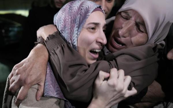 Shuruq Dwayat,左,巴勒斯坦监狱11月26日,当她回到耶路撒冷东部苏尔巴哈尔的家时,她被亲戚拥抱。AP-Yonhap