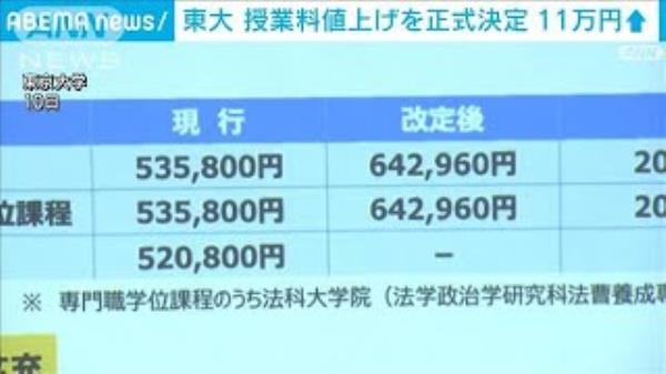 东京大学正式决定,从下学年开始,东京大学的本科新生学费将增加约11万日元,总学费将达到642960日元。