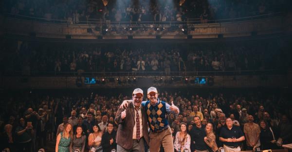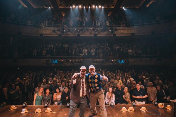 喜剧二人组和托尼奖提名者乔什·盖德和安德鲁·兰内尔斯于9月15日回到百老汇参加《古腾堡》的首次预演!音乐!谢幕时,演员们戴着写着“有史以来第一次演出”的配套卡车帽,并与观众合影,庆祝这场售罄的演出。看看上面的谢幕镜头。