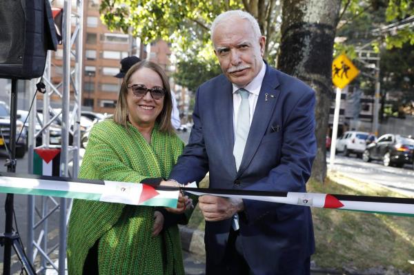 据Wafa通讯社报道,巴勒斯坦外交和侨民事务部长利雅得·马利基和波哥大市议会议员安娜·特蕾莎·伯纳尔出席了就职仪式。